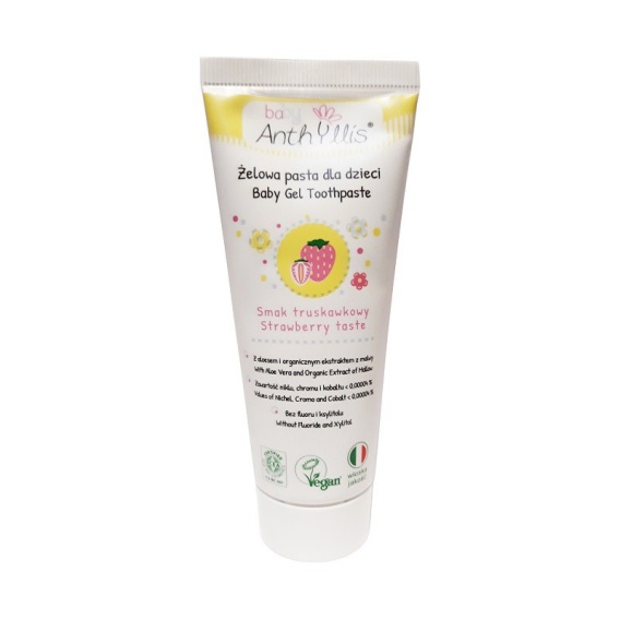 Baby Anthyllis to pasta do zębów stworzona z myślą o dzieciach już od pierwszego ząbka. Formuła bez fluoru i syntetycznych dodatków, z naturalnym, ulubionym przez dzieci smakiem truskawki, wspiera codzienną higienę jamy ustnej, dbając o delikatne dziąsła i mleczne zęby.