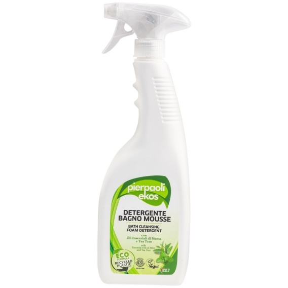 PIERPAOLI EKOS ekologiczna pianka do czyszczenia łazienki i płytek to naturalny, skuteczny i bezpieczny preparat z olejkami mięty i drzewa herbacianego. Idealny do armatury, ceramiki i płytek, wegański i certyfikowany przez ICEA.