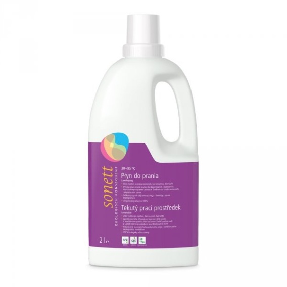SONETT Płyn do prania Lawendowy 2L – naturalny, ekologiczny płyn do prania białych i kolorowych tkanin z lawendowym olejkiem eterycznym. Skuteczny już od 30°C, delikatny dla skóry i środowiska.